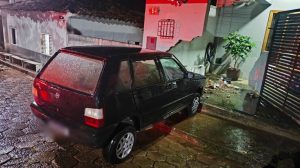 Na noite de domingo (2), um carro colidiu contra o muro de uma residência na região central de Santana da Vargem.
